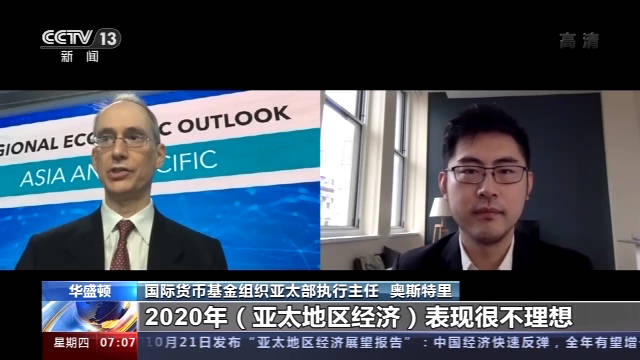 总部位于美国华盛顿的国际货币基金组织21日发布“亚太地区经济展望报告”,报告预测2020年亚太地区经济将萎缩2.2%,较今年6月的预测又下调了0.6个百分点,但在2021年有望增长6.9%。就这一最新展望报告,国际货币基金组织亚太部执行主任乔纳森·奥斯特里接受了央视记者的专访。他表示,中国在抗击新冠肺炎疫情和恢复经济发展方面有很多值得学习借鉴的地方。国际货币基金组织的报告认为,目前新冠肺炎疫情仍在全球蔓延,亚太地区经济已经开始恢复但不均衡,区域内各经济体恢复的速度不一。